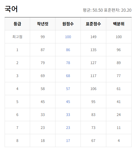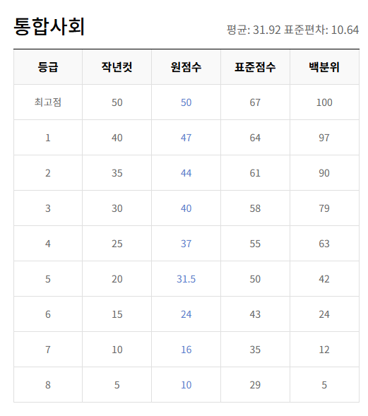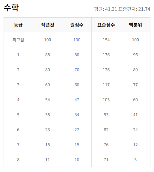 과목별 등급컷 및 출제 경향