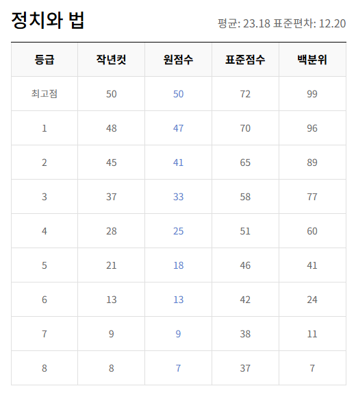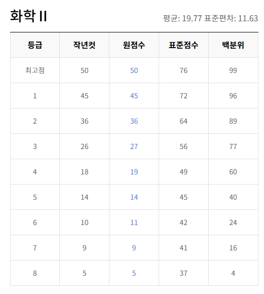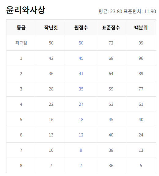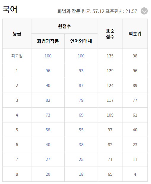 - 화법과 작문 선택자: 1등급 96점, 2등급 90점, 3등급 82점