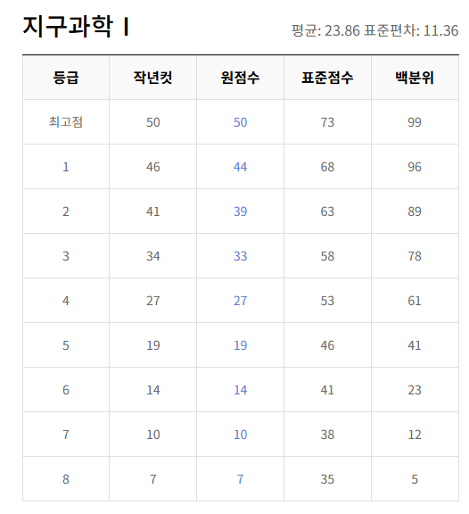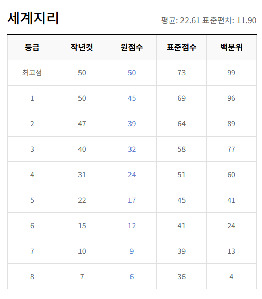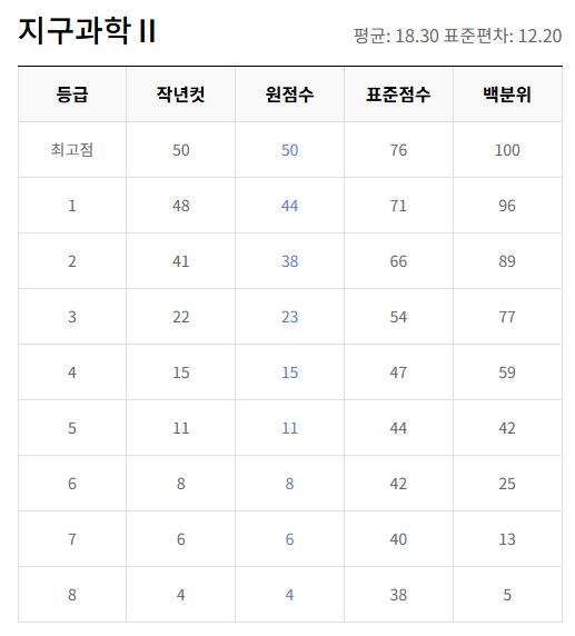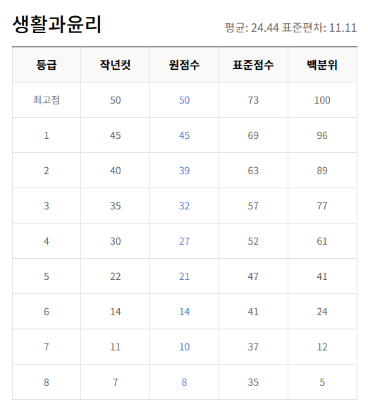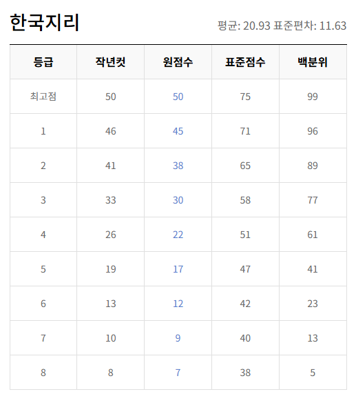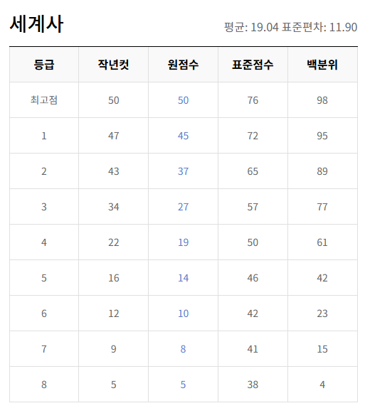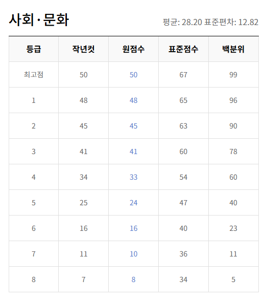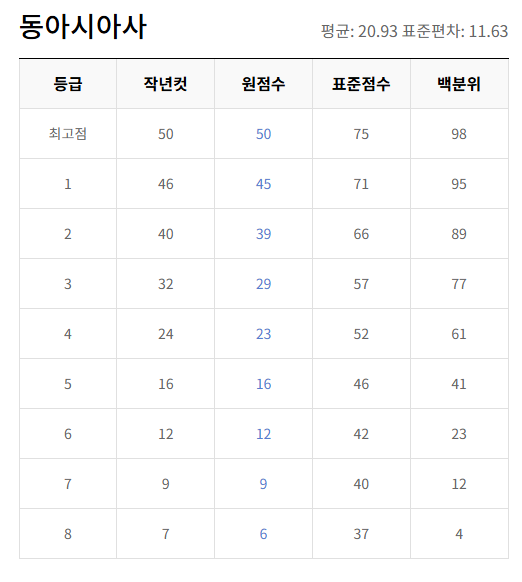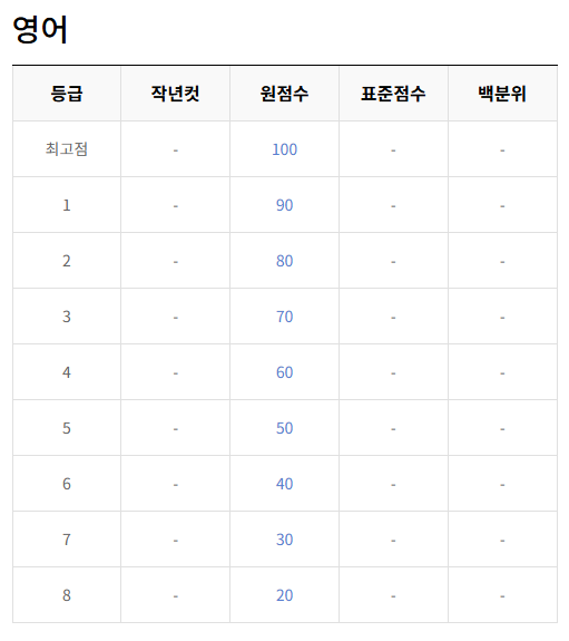 - 언어와 매체 선택자: 1등급 93점, 2등급 87점, 3등급 79점