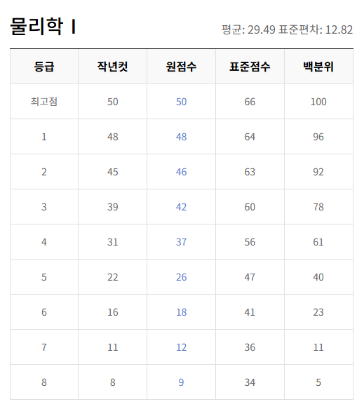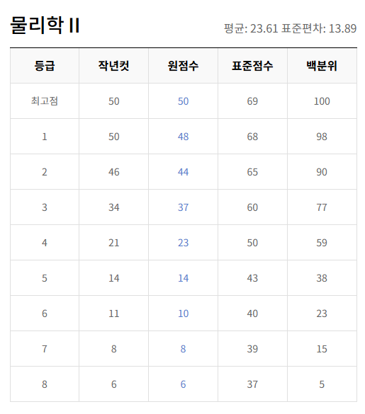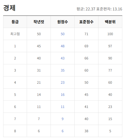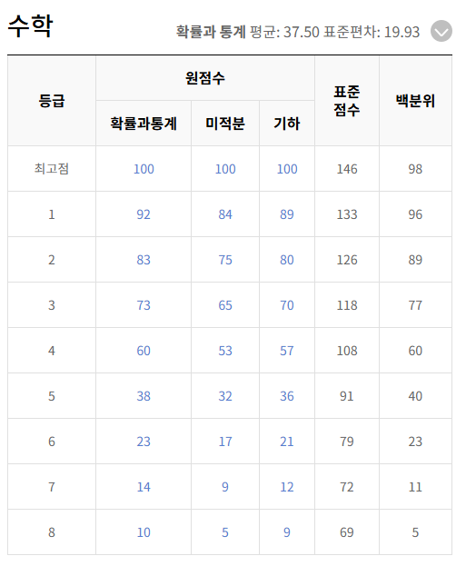- 확률과 통계: 1등급 90점, 2등급 81점